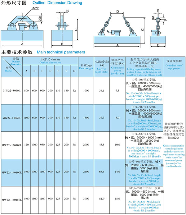 Generally speaking, I steel is mostly used two odd binding, even if there is no binding, through electromagnetic suction can also be the second layer all lift, if the finished product is longer, mostly using four electromagnets, each two one assembly on the balance beam. When the size and binding way of the sucked I-beam is not consistent with the sample, our company can make special design according to the actual situation of users to meet the different requirements of users.
