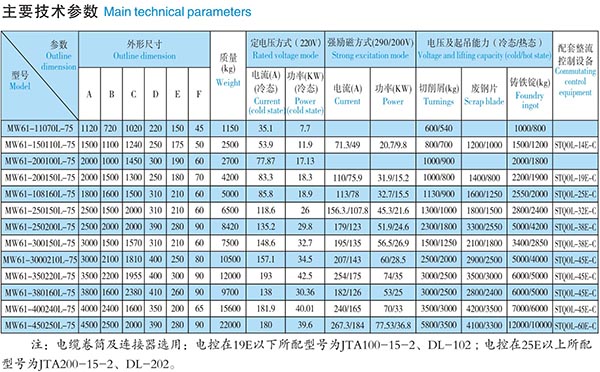MW61 series of lifting electromagnet uses the same as MW5 series, but the appearance is a specially designed oval shape to adapt to the shape of the car, suitable for loading and unloading of scrap steel in the shape of the car container and to add scrap steel to the rectangular groove. As the size of the hopper is different in each steel enterprise, it can be customized according to the special size required.