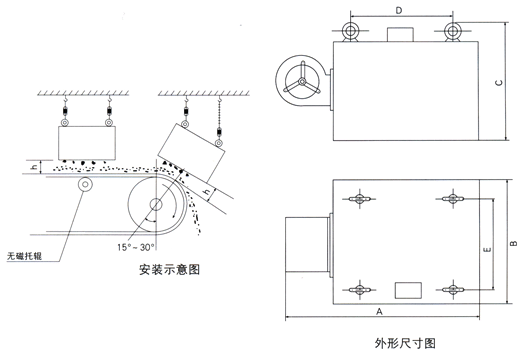 RCDA series air-cooled suspended electromagnetic iron eliminator installation diagram: