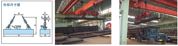 1、磁結(jié)構(gòu)為扁平狀,適合搬運(yùn)各種外徑長度根數(shù)的捆扎鋼管。