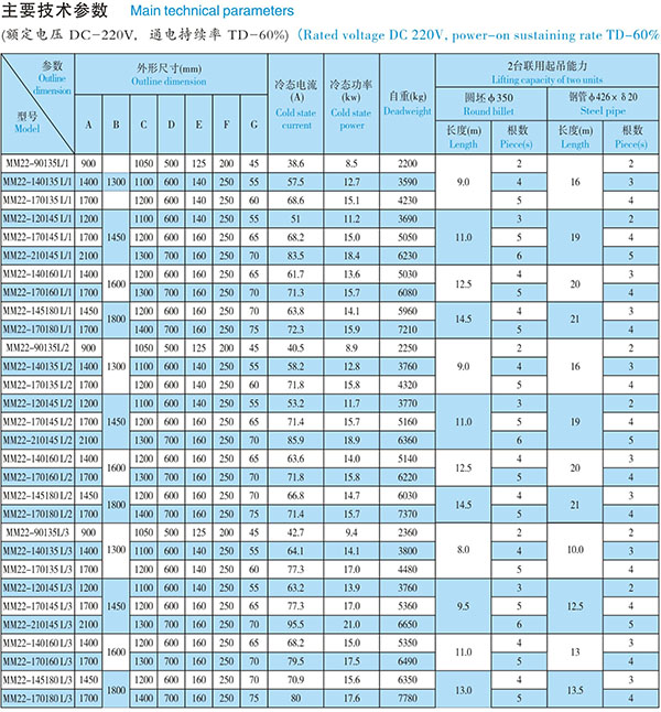 主要適用于吊運(yùn)圓坯、鋼管等,也可用于吊運(yùn)方坯、鋼錠和大型初軋坯、型鋼等。特殊磁路設(shè)計(jì),具有透磁深的特點(diǎn)。